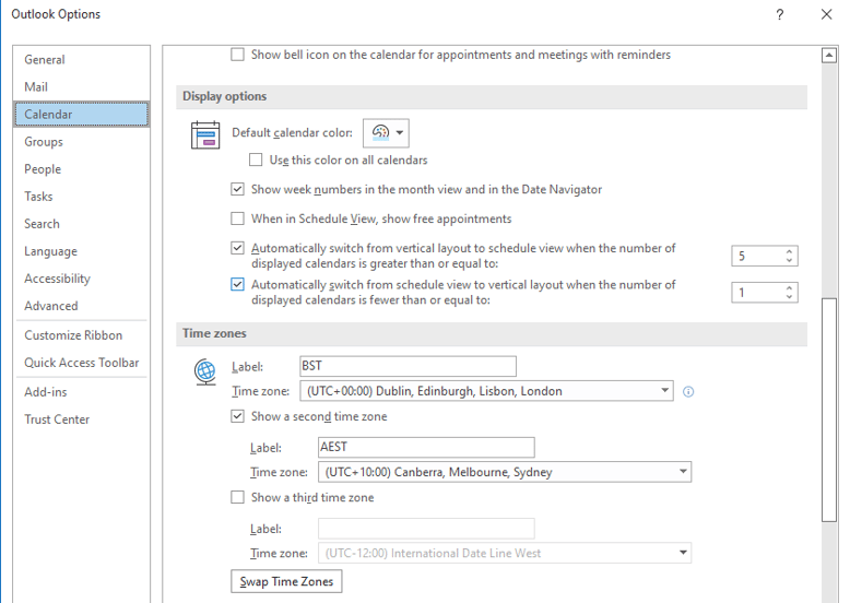If you plan projects, need to track progress or regularly recurring items it can be very useful to see week numbers in your calendar. To add them to your Outlook 2019 calendar do the following: